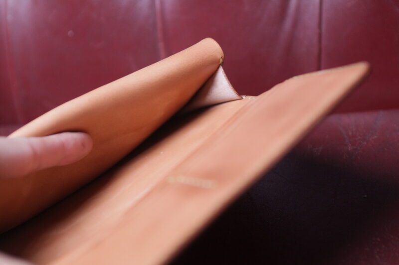 こういう深いところなんかは革細工では漉き加工をしてアレコレするのが基本で、当たり前の工夫ですので、当然コテージも施しておりますが