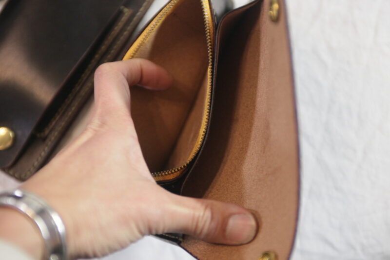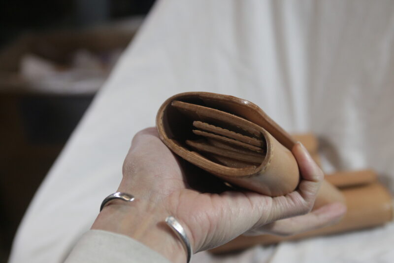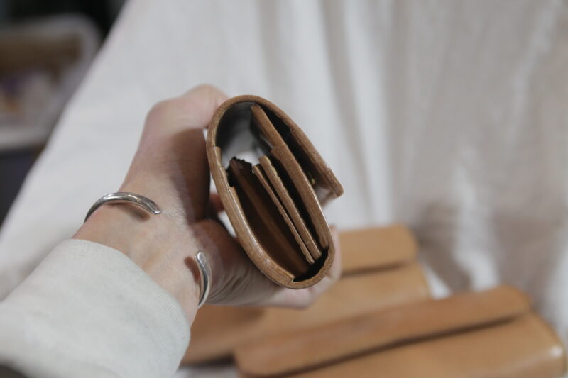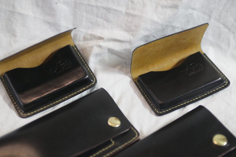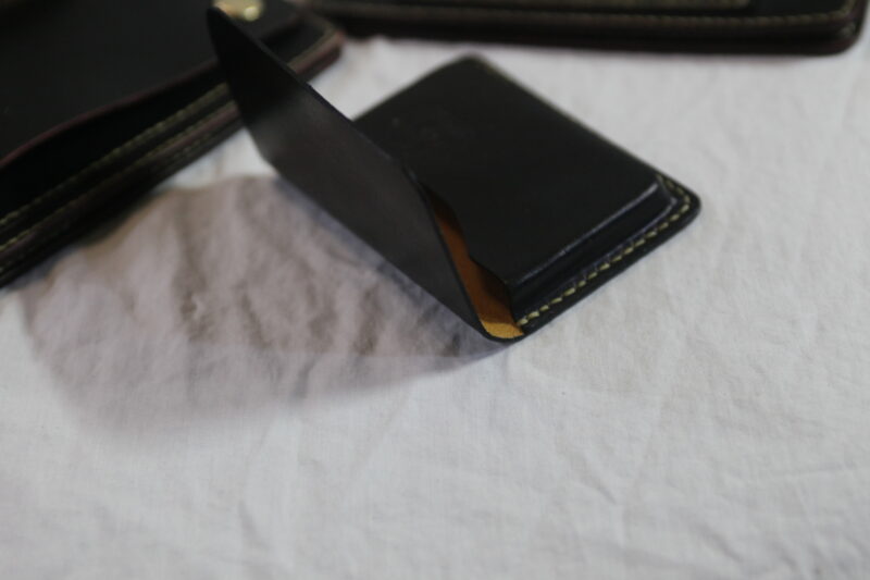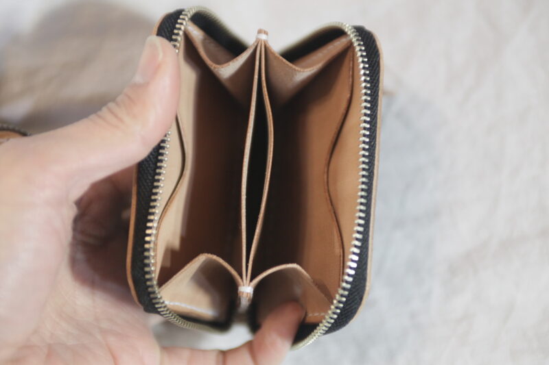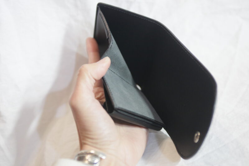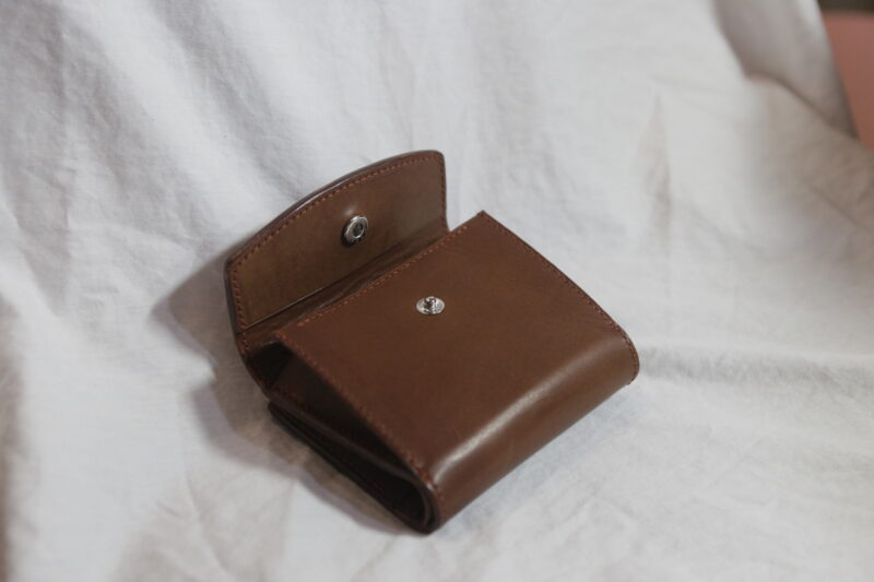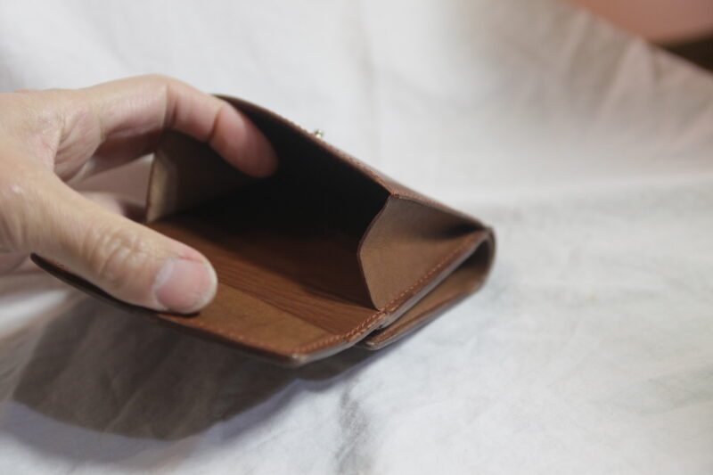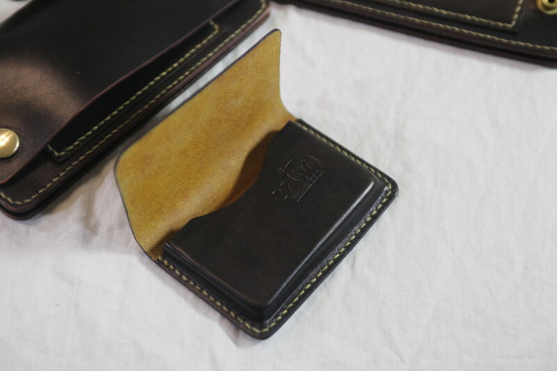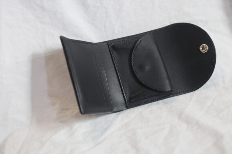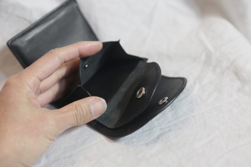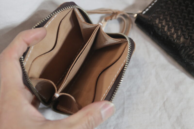 良くあるミニウォレットの仕様ですが、その中でも極力小さく仕立ててまして。
