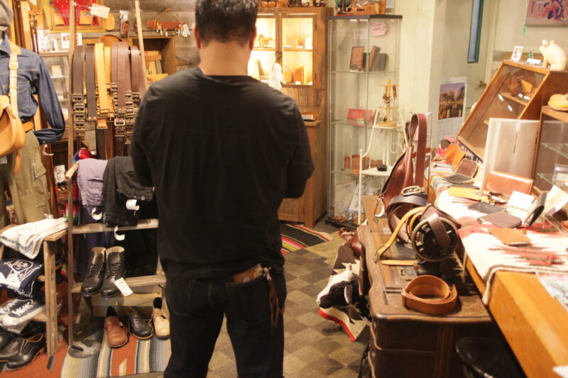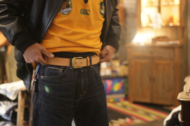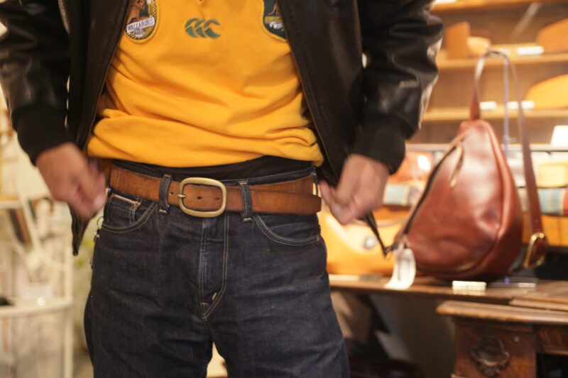 ついでに!?店頭にストックして有った手染め茶芯ブラックのベルトⅠ-40も漢気穴1つで持ち去り事件でした~♪