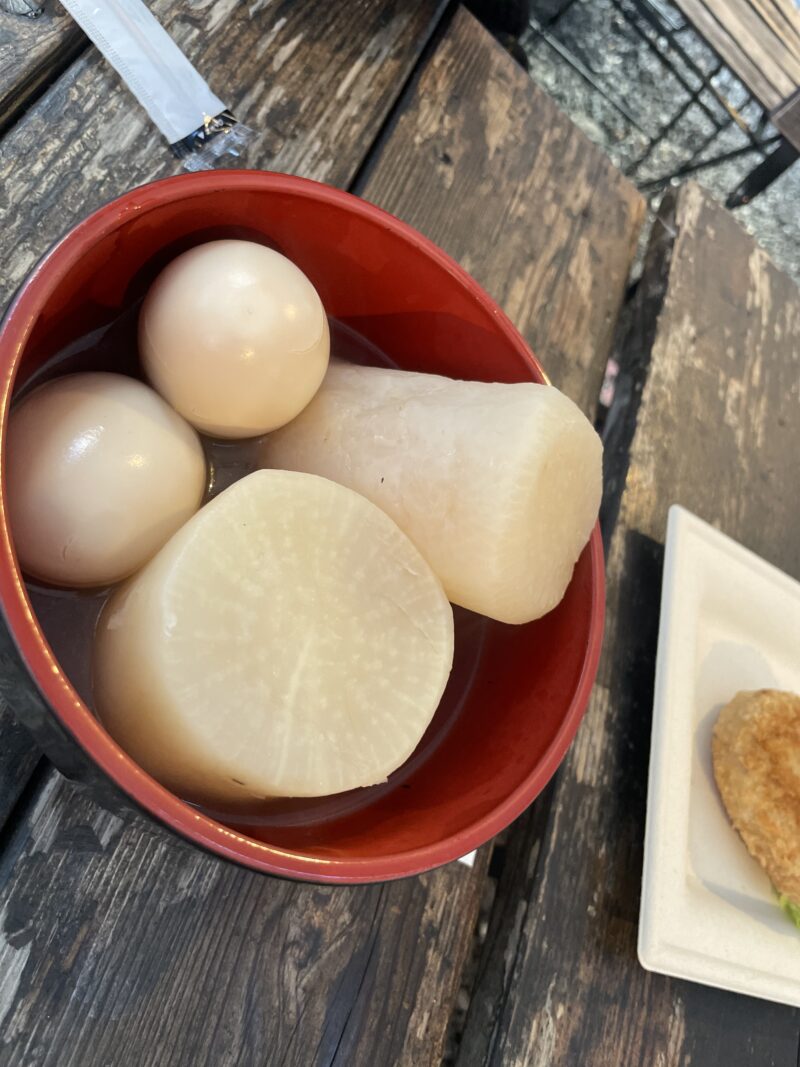 ってやりながら、遅めのお昼はヒャッカテン裏にある地味メなテラスカフェでおでん^^