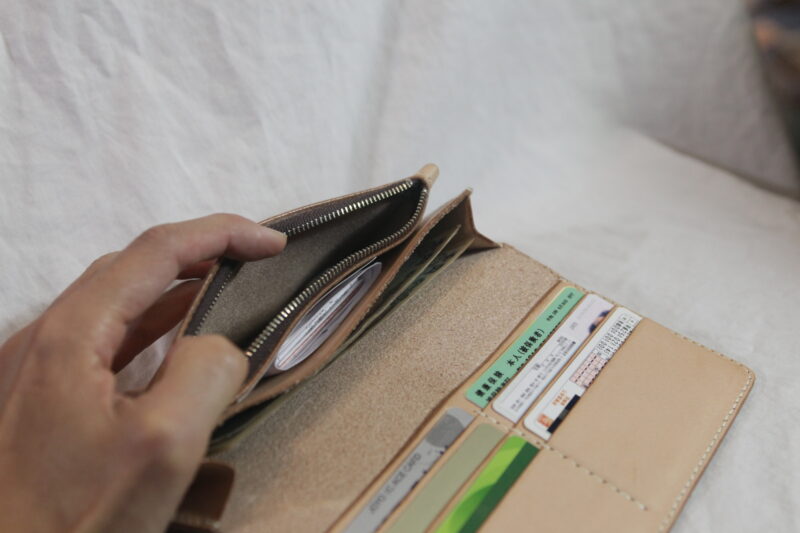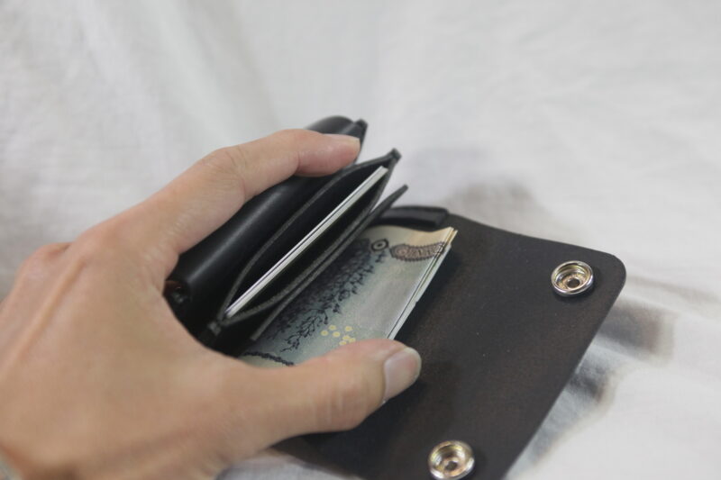 さらっと簡単そうにやってますが、カードやお札の出し入れをちゃんと考えられた寸法どりがなされててとても気配りの利くオトコ仕様になってます^^