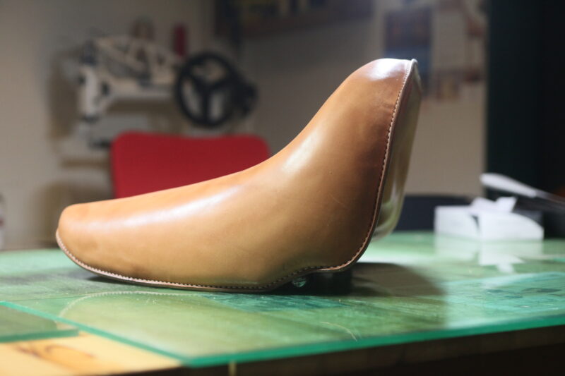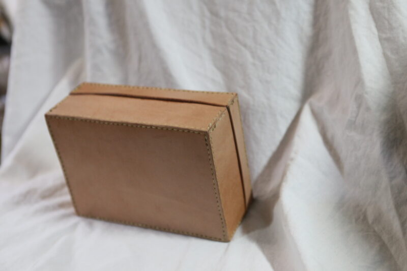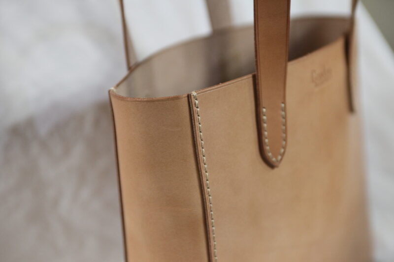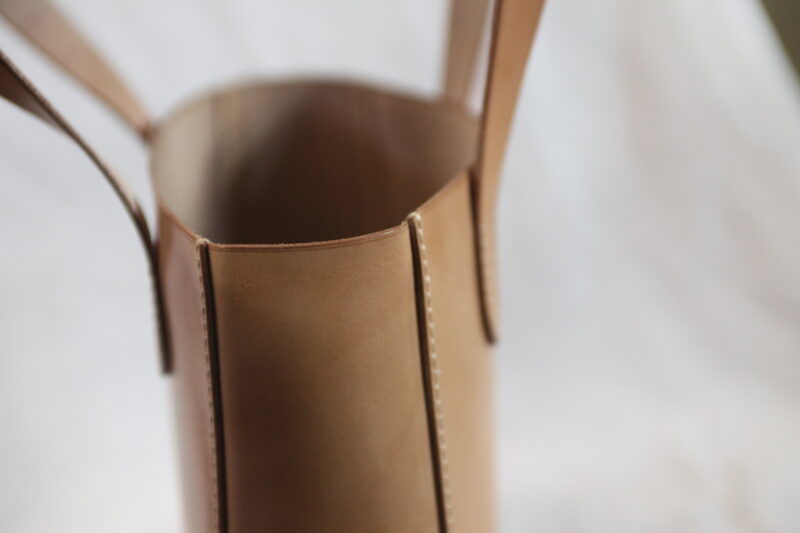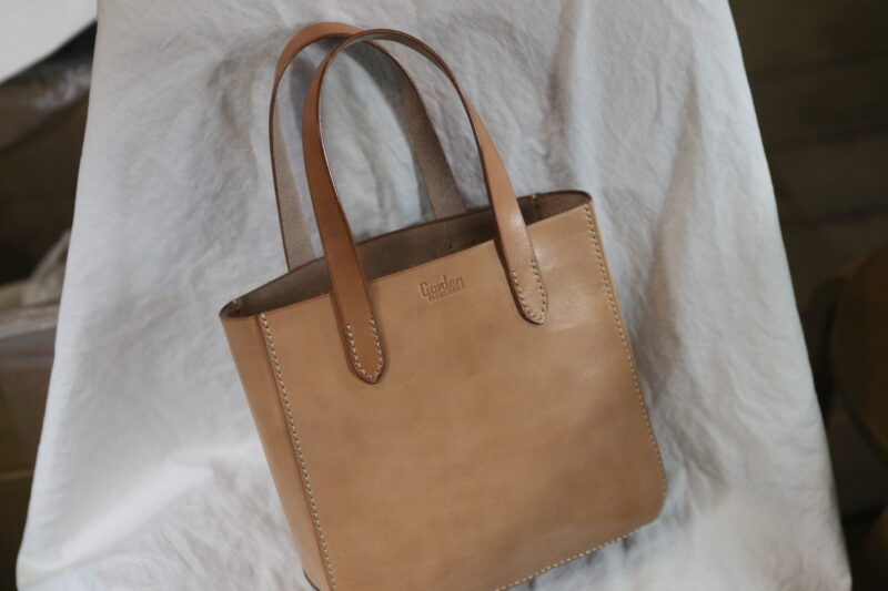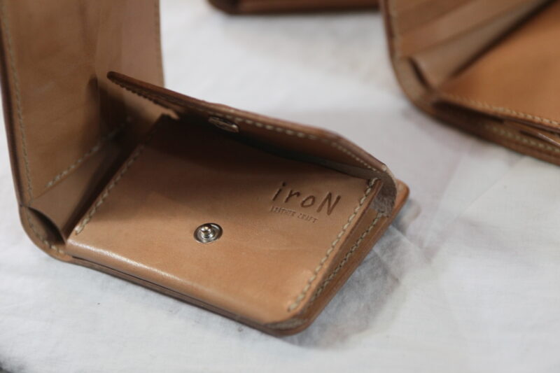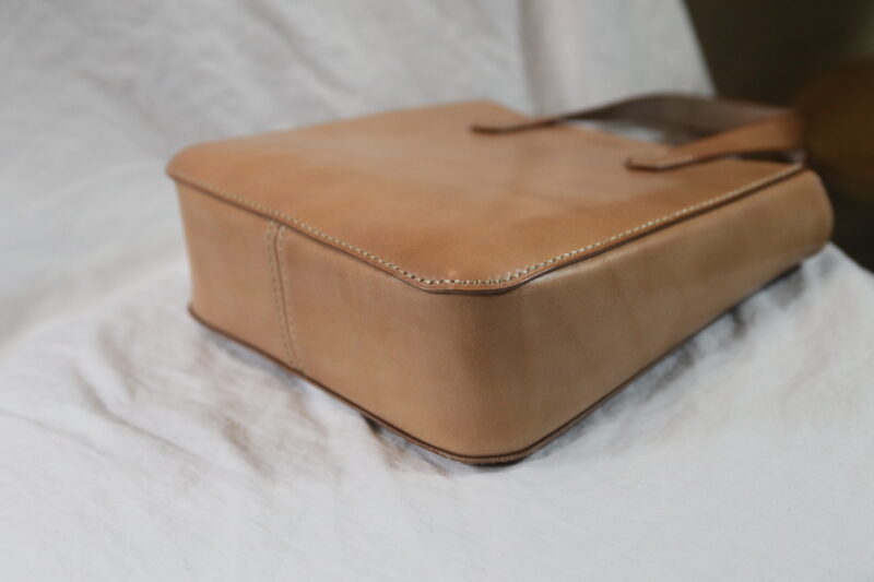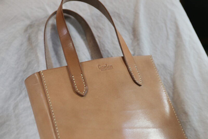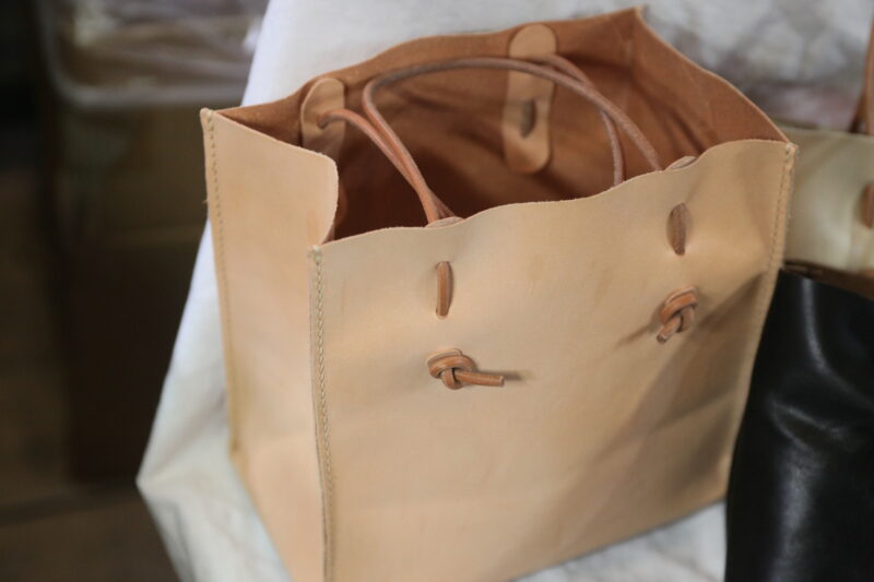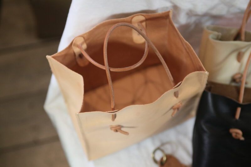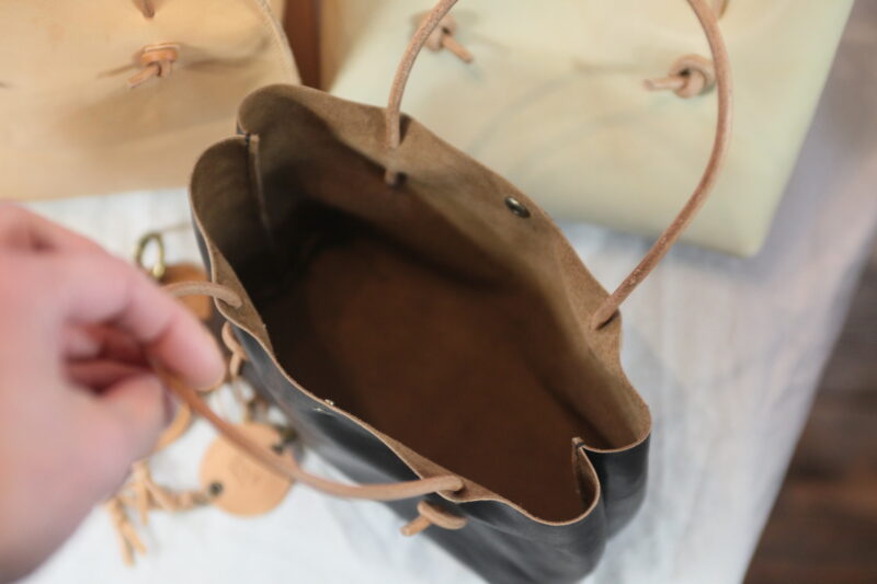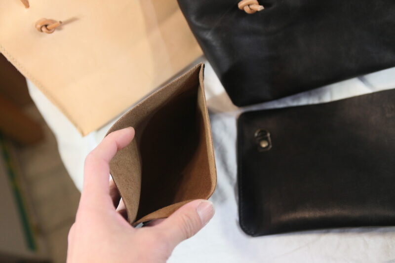 大まかにはこの仕様で行くのが決定しておりますが、袋の底の仕立てについて、革の折幅や向き、ステッチ幅など、知らないヒトからするとどうでも良いようなトコロもしっかりブラッシュアップし続けておりまして、もう一回違うやり方でやってみる!とのことでしたっ