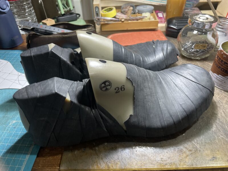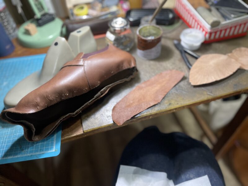 この日もコテージシューズ第2段のフィッティングシューズの製作