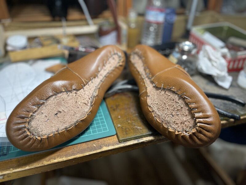 さて、この日も靴工房ではコテージシューズ第2段のフィッティングシューズ製作に明け暮れます。