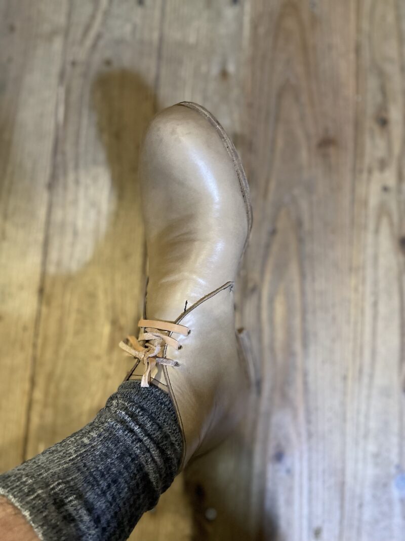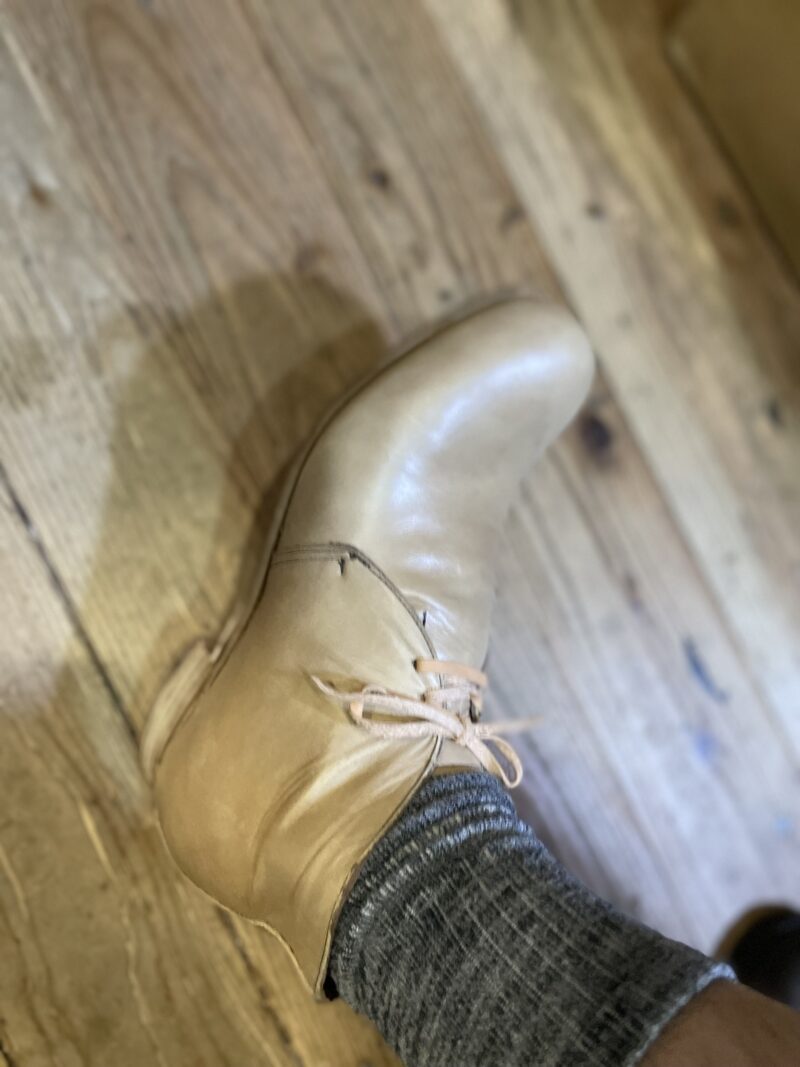 で、帰って来てからアサクーサーに行けなかった分、自工房で靴づくりしましてね。