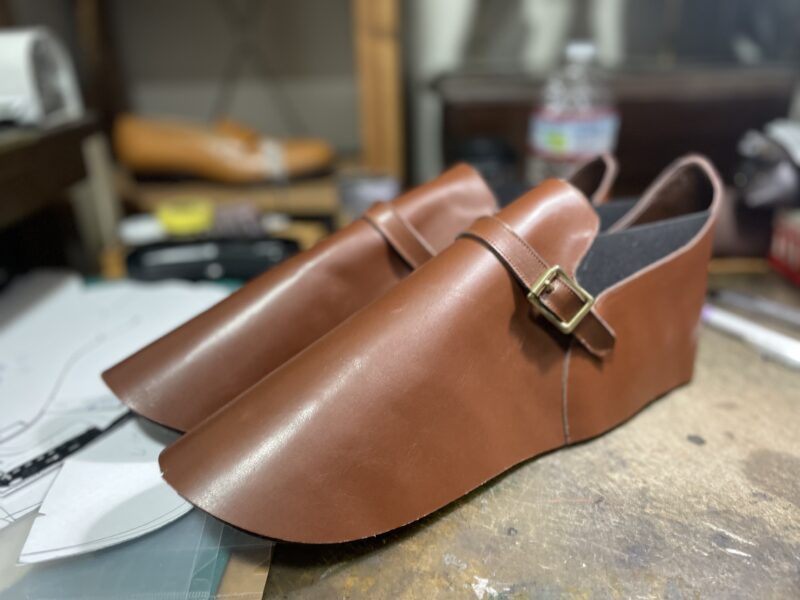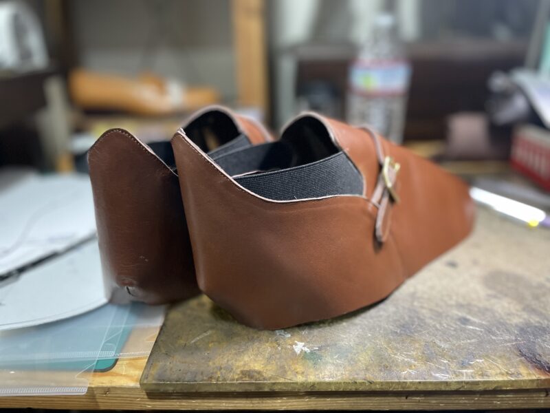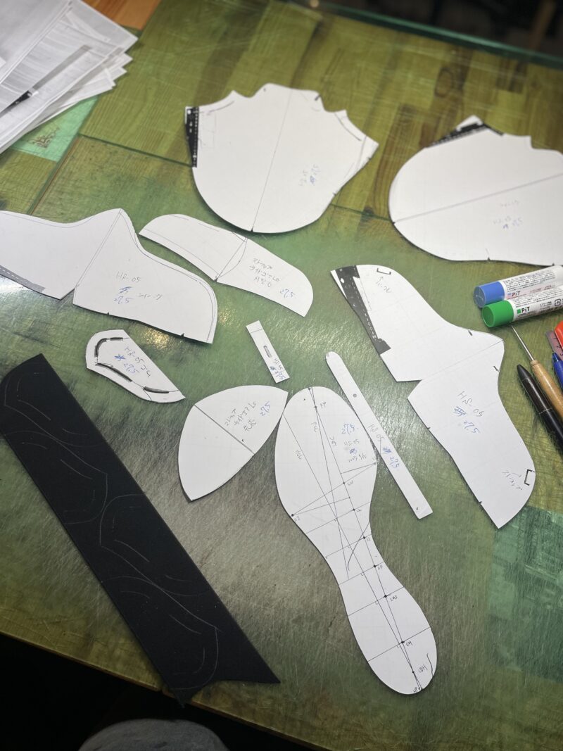 そして、工房に入り、この日はコテージラスト第2段の27.5cmのパターンチェックしながらのサンプルシューズ製作として、アッパー作成。
