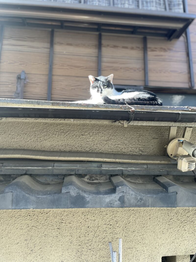 お昼時はニャンコさん屋根の上で日向ぼっこしてました^^