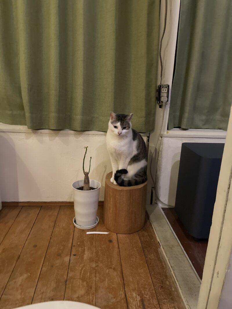 いつものようにパンを買ってパークで食べようと思ったら、パークはまだ工事中なので、ニャンコさんのテリトリーで食べることに。