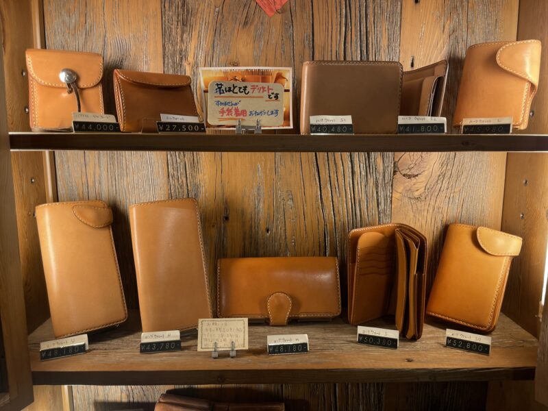 束の間ですがコテージスタンダードラインのお財布達全種類ショーケースに陳列されまして♪