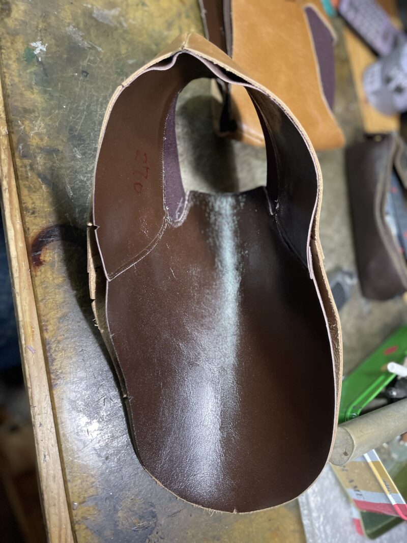 で、この日はニューラストのサンプルシューズ27cmのアッパー組み立て&パターン確認・修正作業