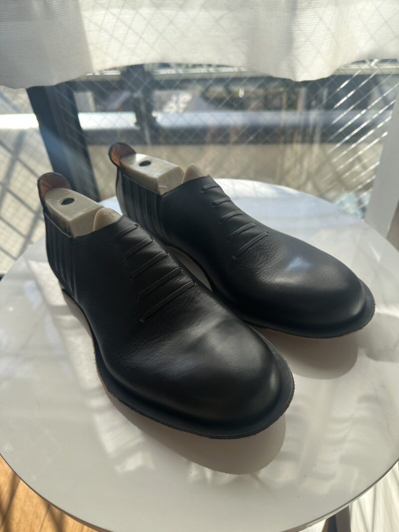 トゥ部分と踵を光らせる鏡面磨きがこちらはできますので何かございましたら連絡ください。