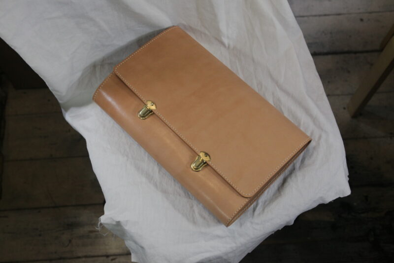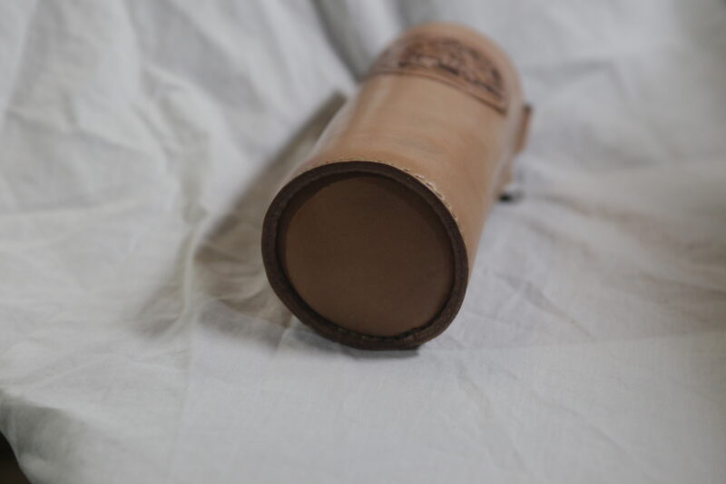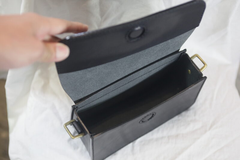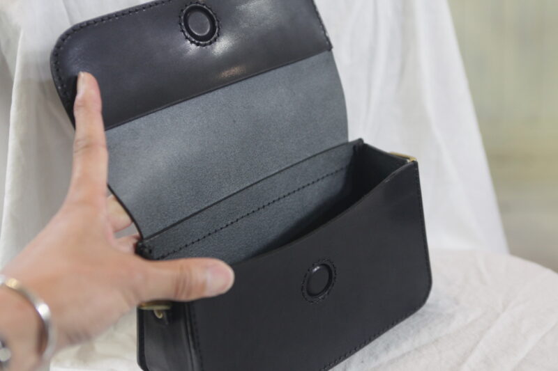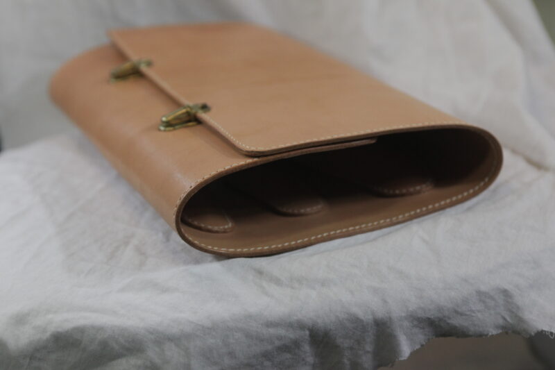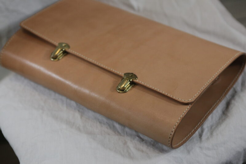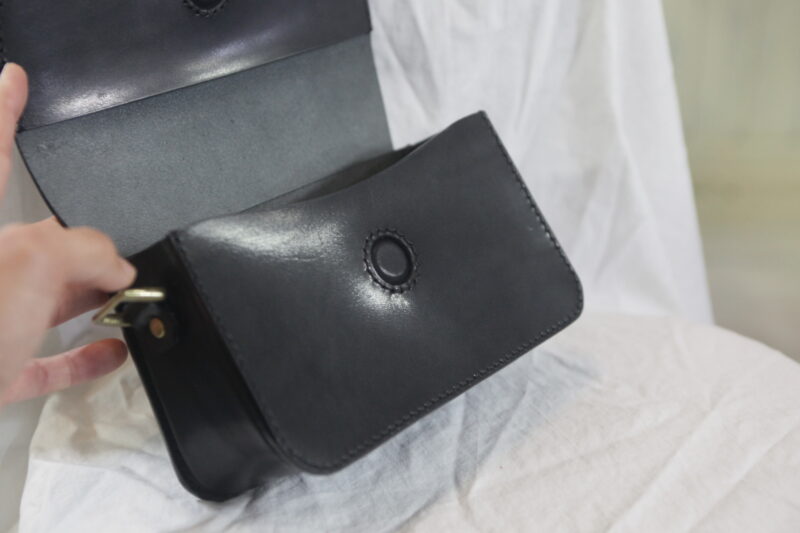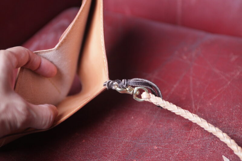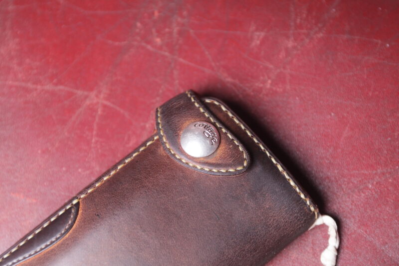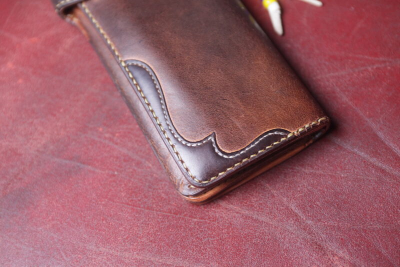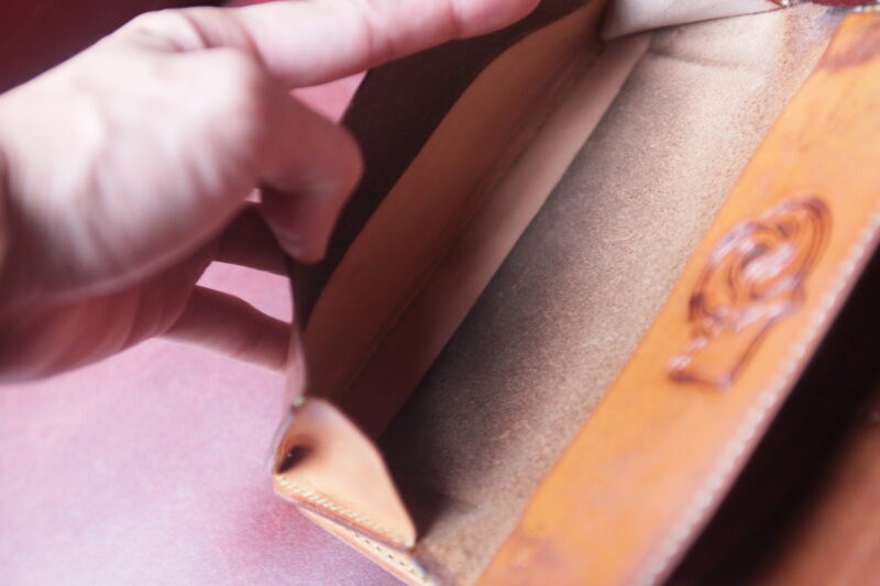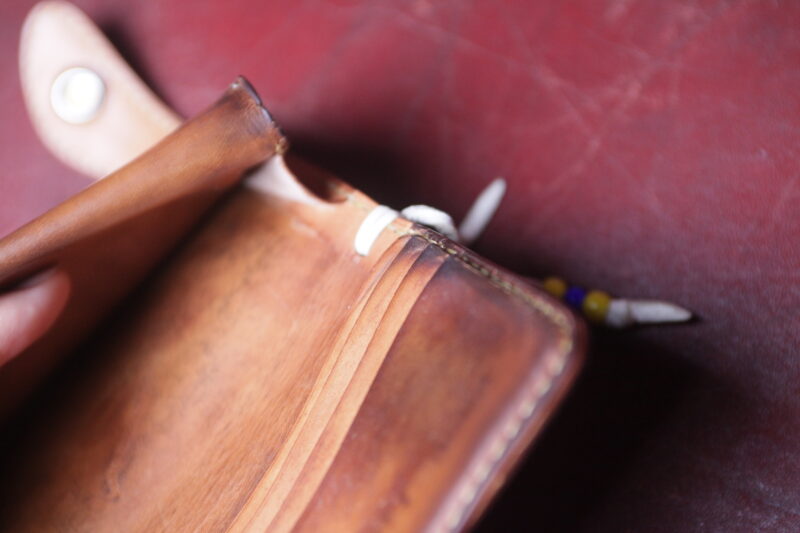 これは本体の曲げ部の補強に使ってる革をそのままベロまで1枚革で繋げてます。