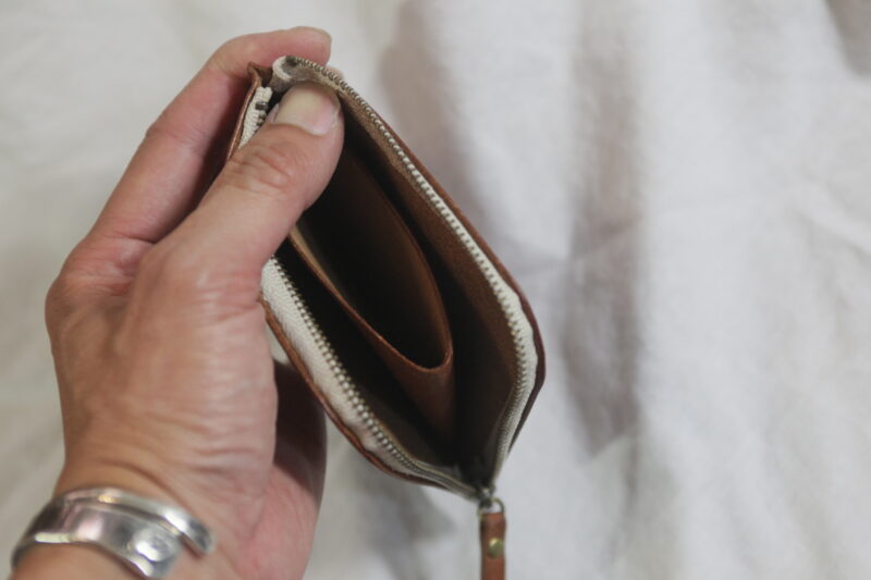 外側収納には片側にマチを設けているのでコインなどの取り出しは容易