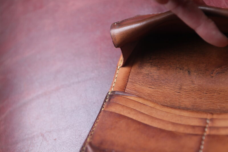 コインケースも長年の使用でひび割れや伸びや変形が見られましたので補強しつつ矯正したり補正したり