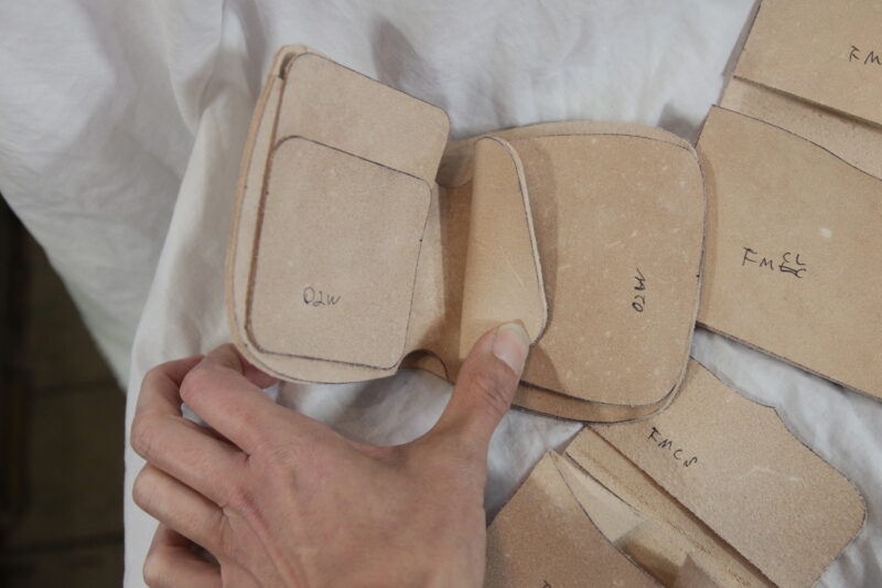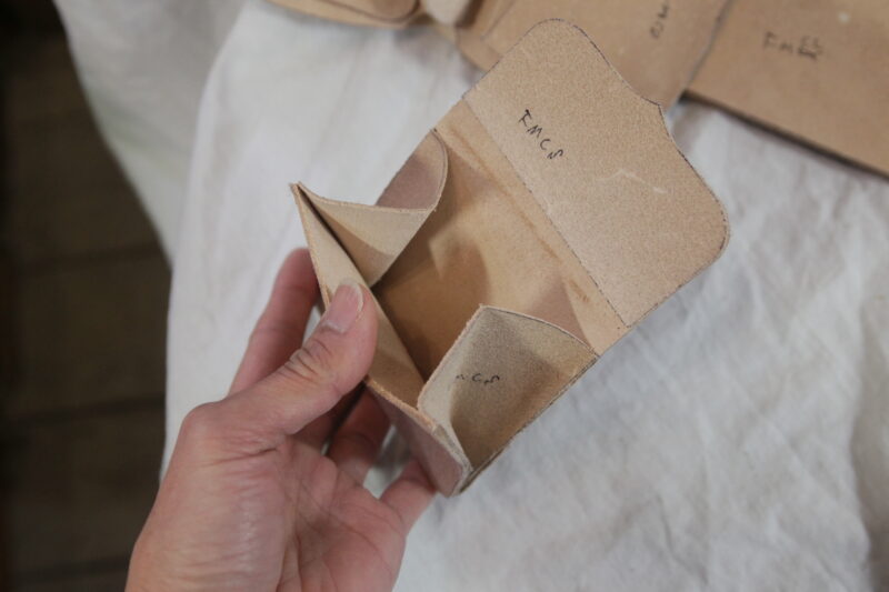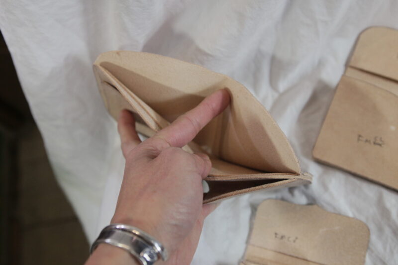 オリジナルのハーフサイズウォレット、自らの使い勝手の良さを追求して、少しずつ寸法かえたりしながら、試行錯誤