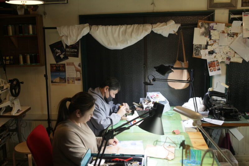 Tさんはオリジナルのミニウォレットパート2ムズカシイ仕様で作り進めて、Sさんも1月の出店に向けて新商品開発に奮闘中