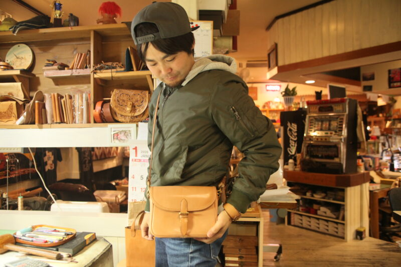 K君、鹿側のショルダーポーチ作って参りました~