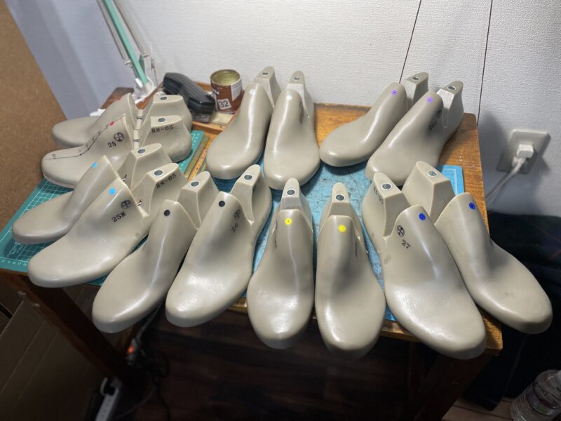 やっとこれで行こう!と決めて、こうして現段階で7サイズ展開として木型を7サイズ複製かけたわけです。