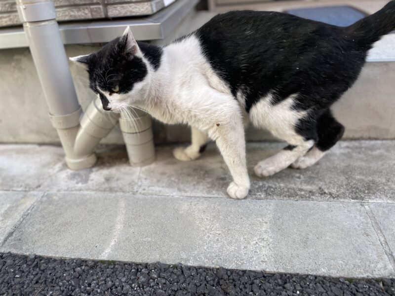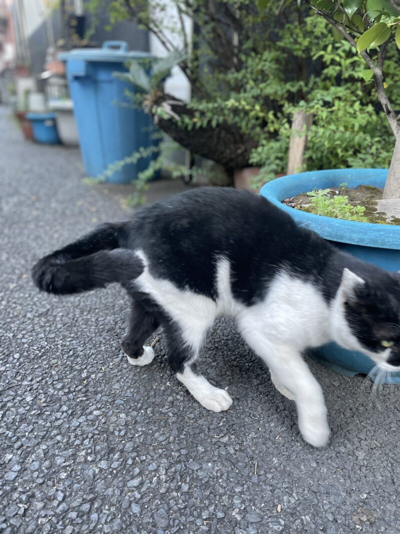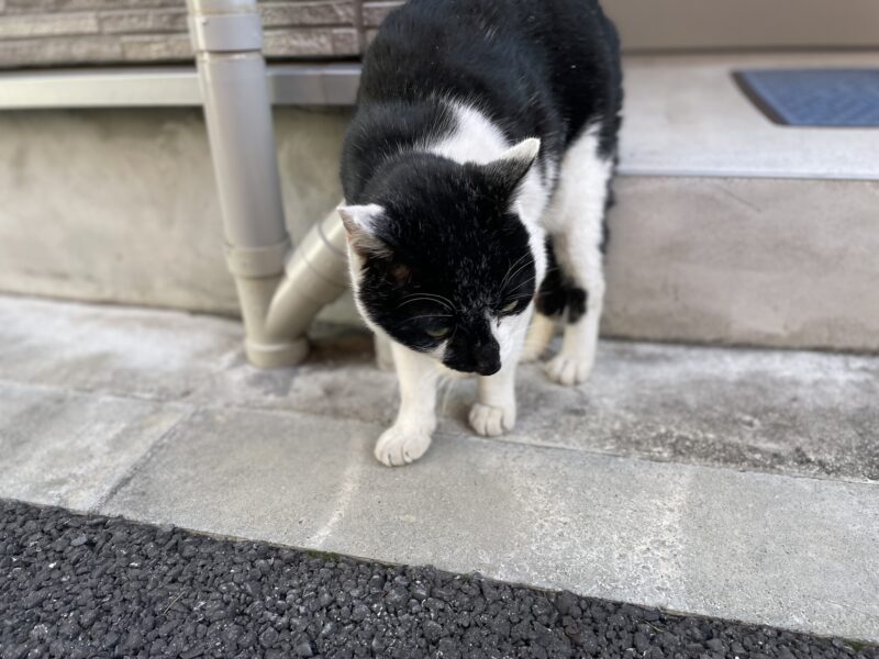 受け取って早速車に積み込みに行く途中、ニャンコさんに朝の挨拶♪