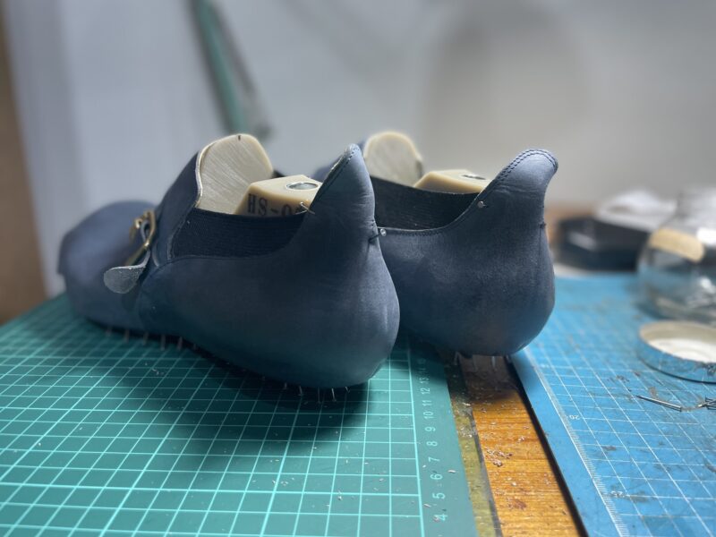 さて、木型のサイズもそろったし、まずは25cmのサンプルシューズの製作続き