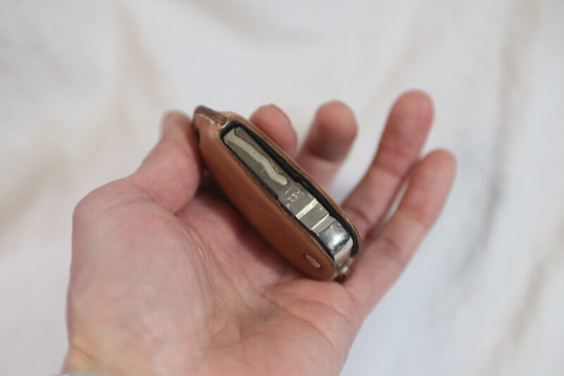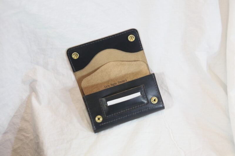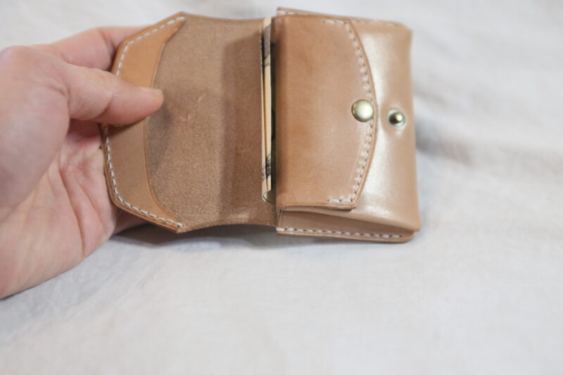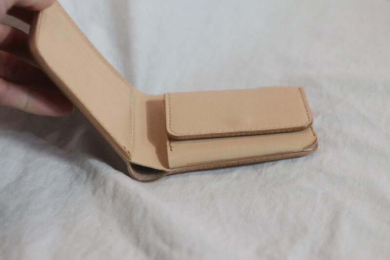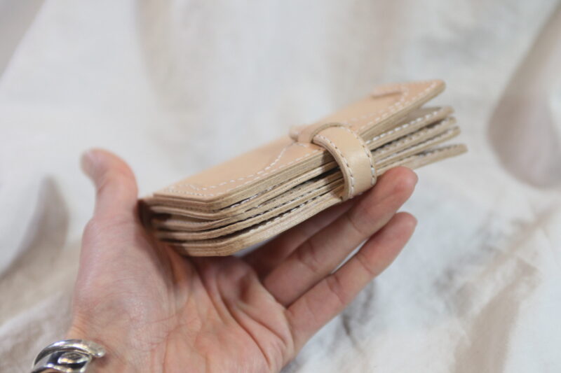 トラッカーウォレット的に作りこんでたので、差し込みにするつもりはなかったんですが、ボタン付ける寸法がなくなってしまって、ひとまず差し込み式で着地って感じでした^^