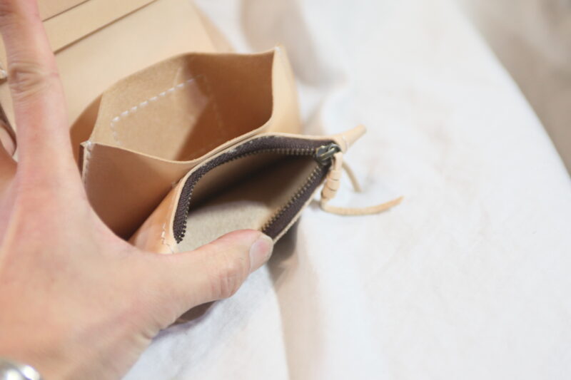 開口ファスナー付けたり、細革でコバを覆ってみたり