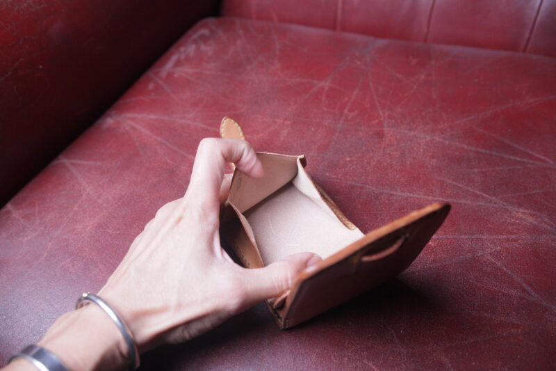 横開きのコインケースは少し深めになってしまうので取り出しやすいように一工夫