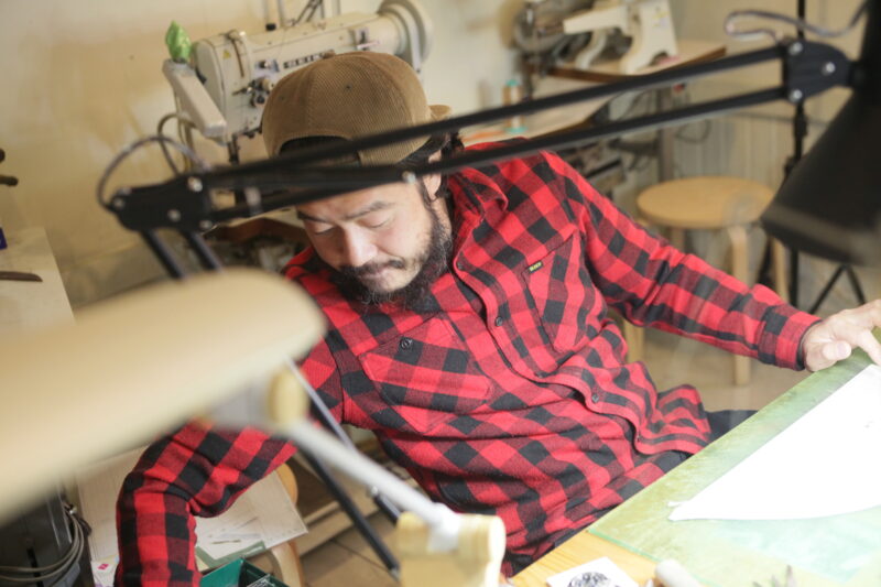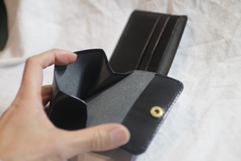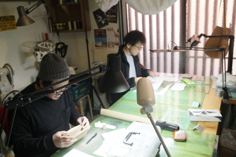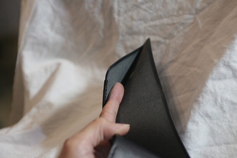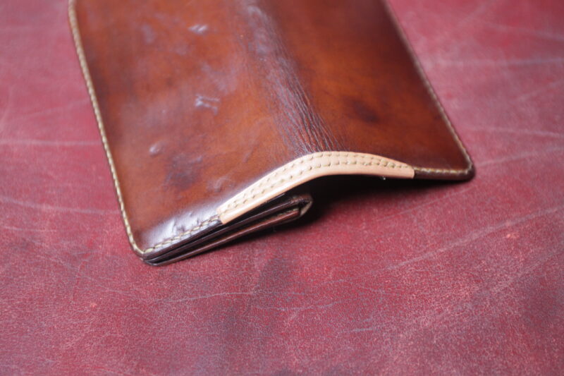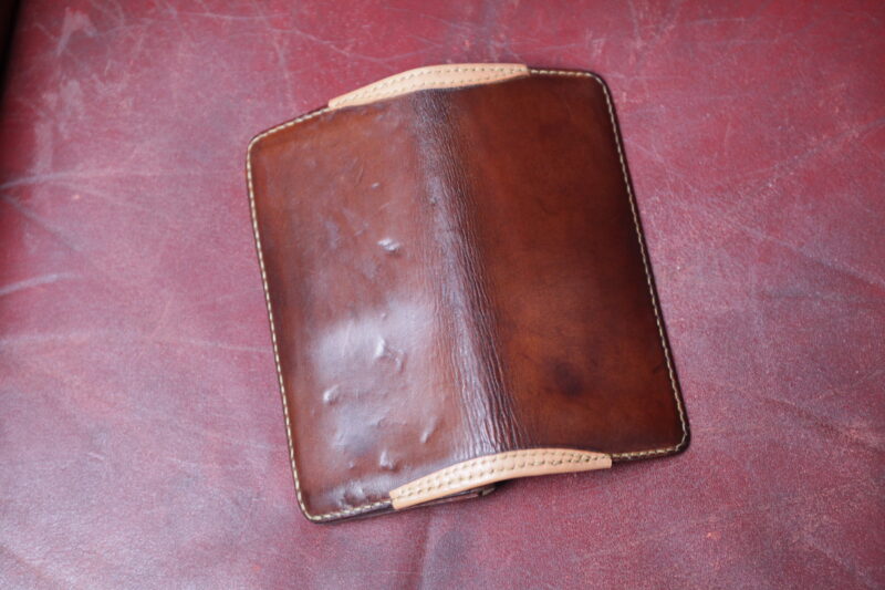 Tさんはオリジナルミニウォレットの最後全周縫いがもう一息っ
